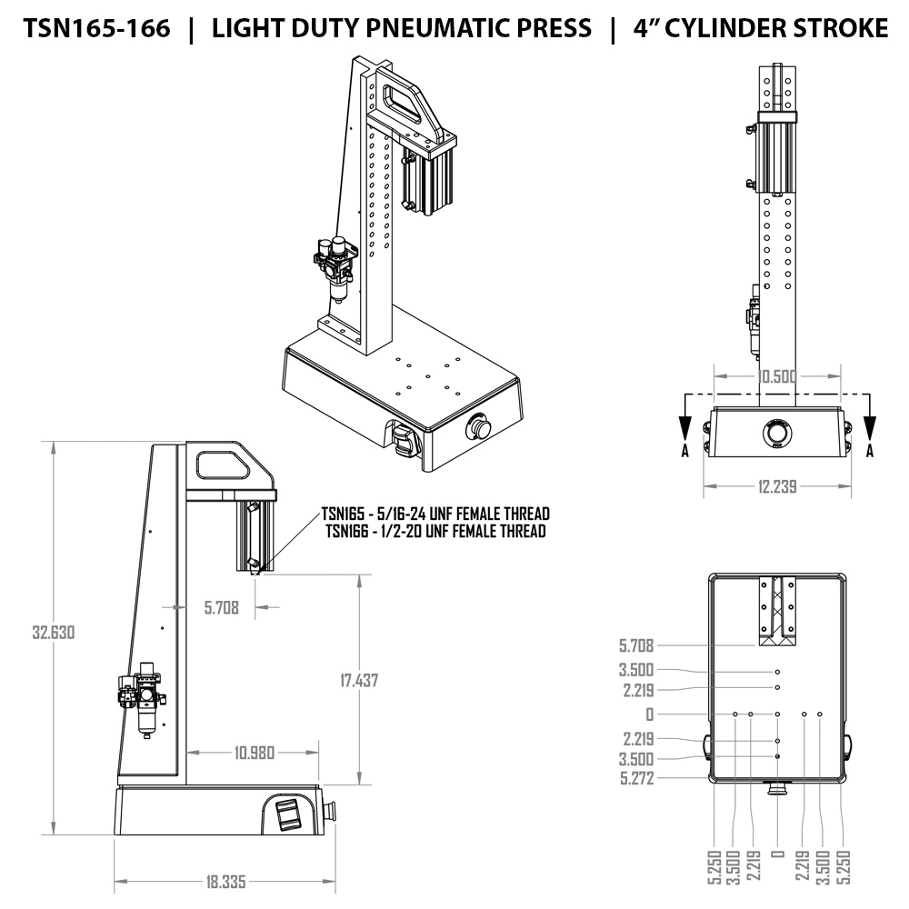 These versatile and light duty air presses can be used in assembly operations requiring less than 500 pounds of down force. It can be tooled using low cost, miniature die sets. The lightweight design makes it easy to move from place to place.
